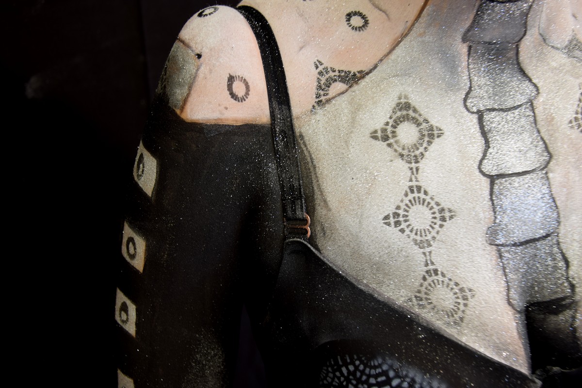 Die Kleidung und die Roboter-Teile aufzumalen gestaltete sich als große Herausforderung, die Künstlerin stand mit Rat und Tat zur Seite.