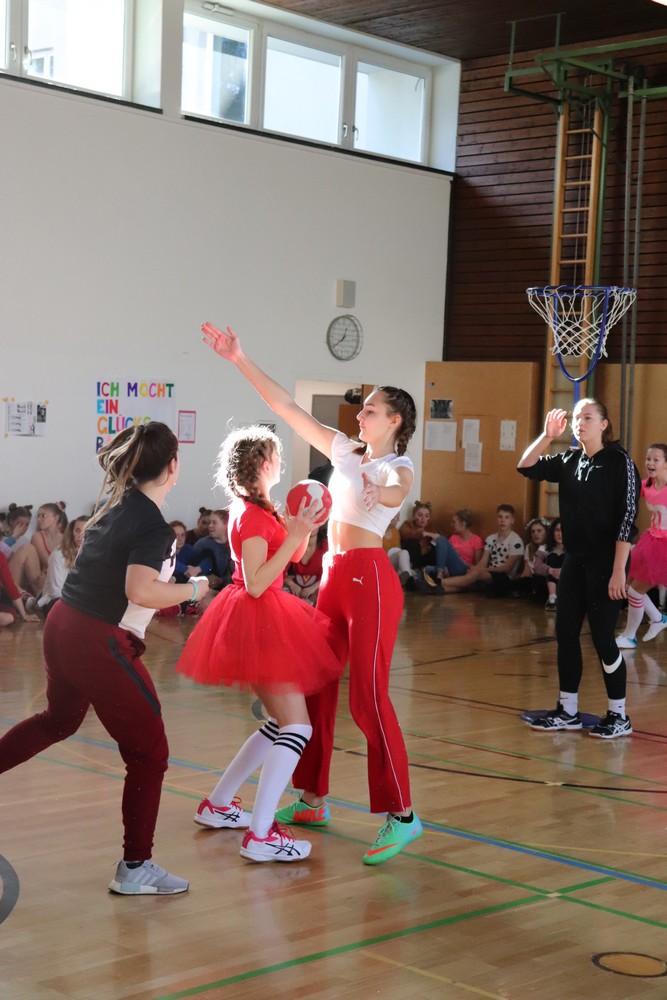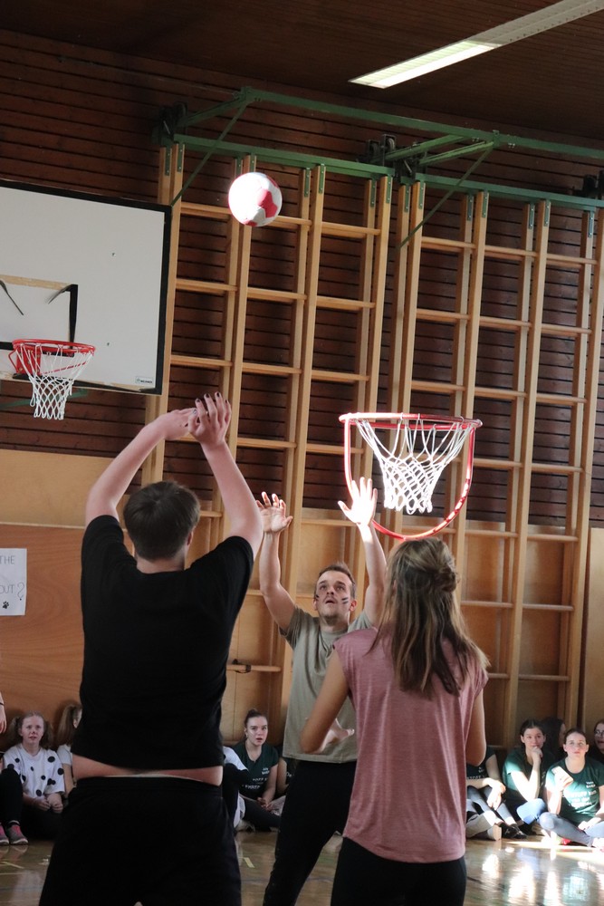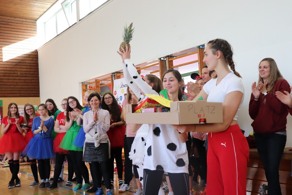 Auch heuer war das alljährliche Korbballturnier spannend wie immer. Umrahmt von Tanzperformances und kreativen Verkleidungen, wurde hart um jeden Punkt gekämpft (auch gegen ein Show-Allstar-LehrerInnenteam), doch am Ende kann es nur ein Siegerteam geben … Am Stockerl standen heuer: