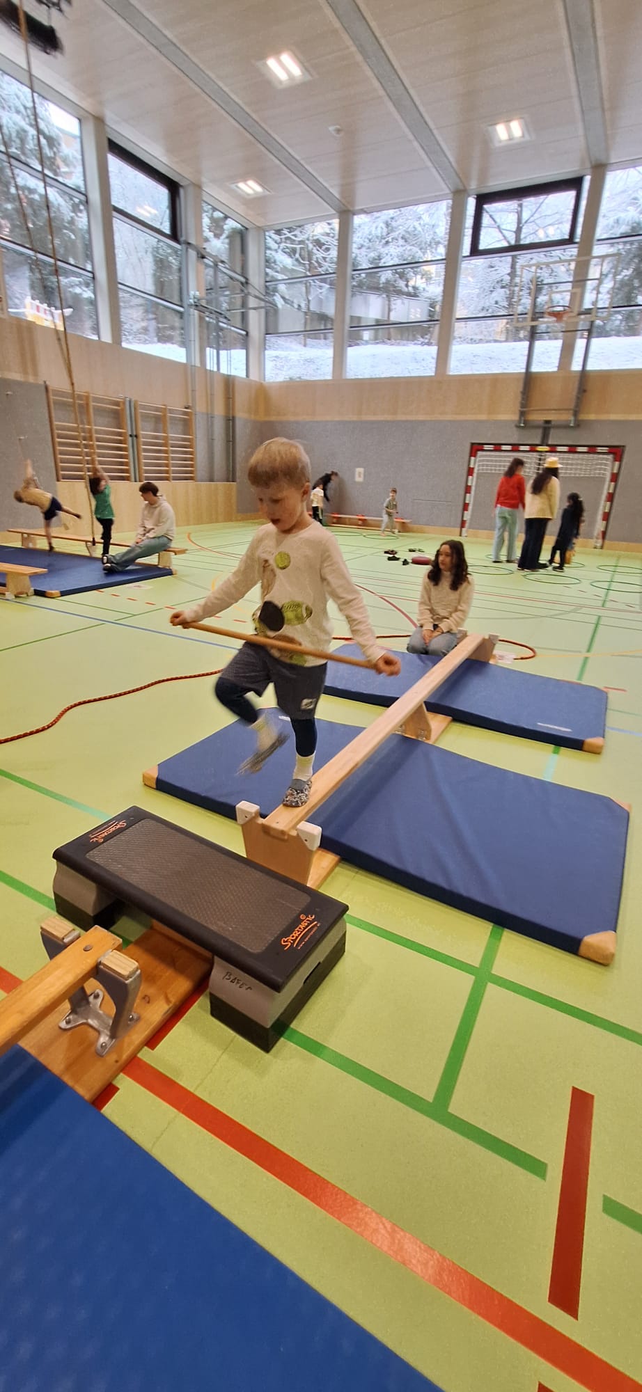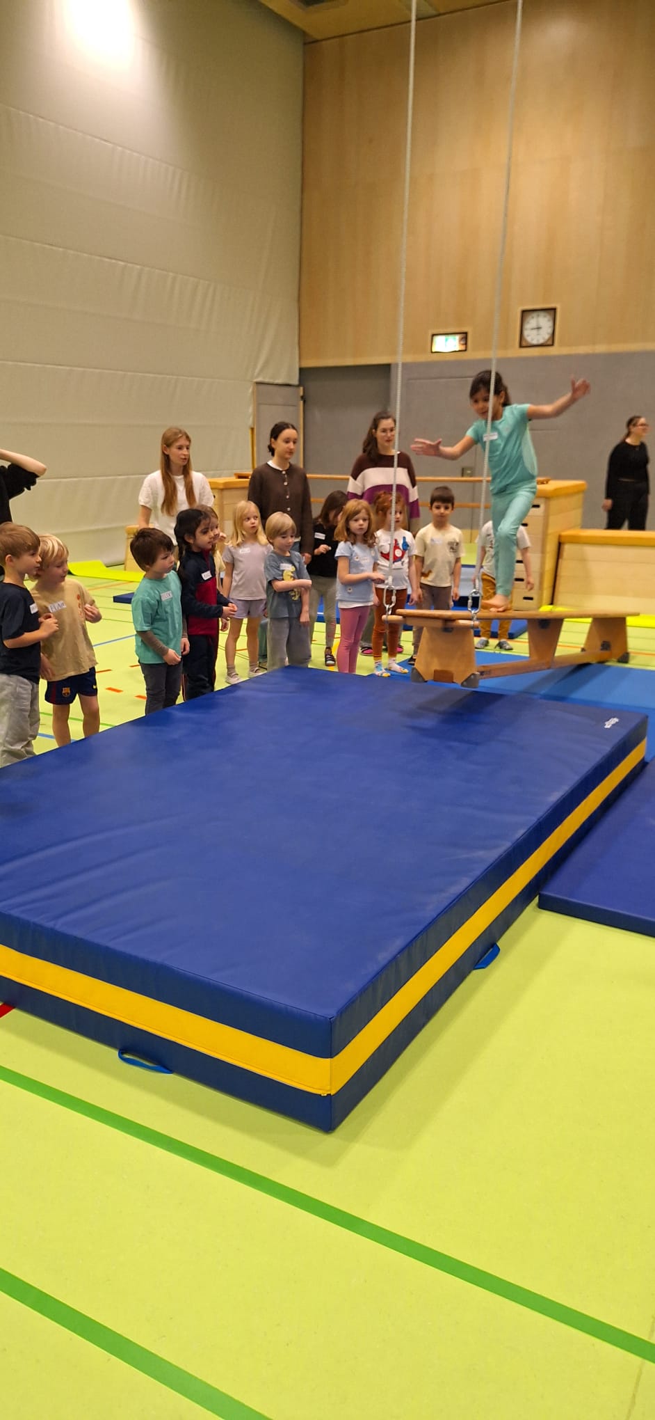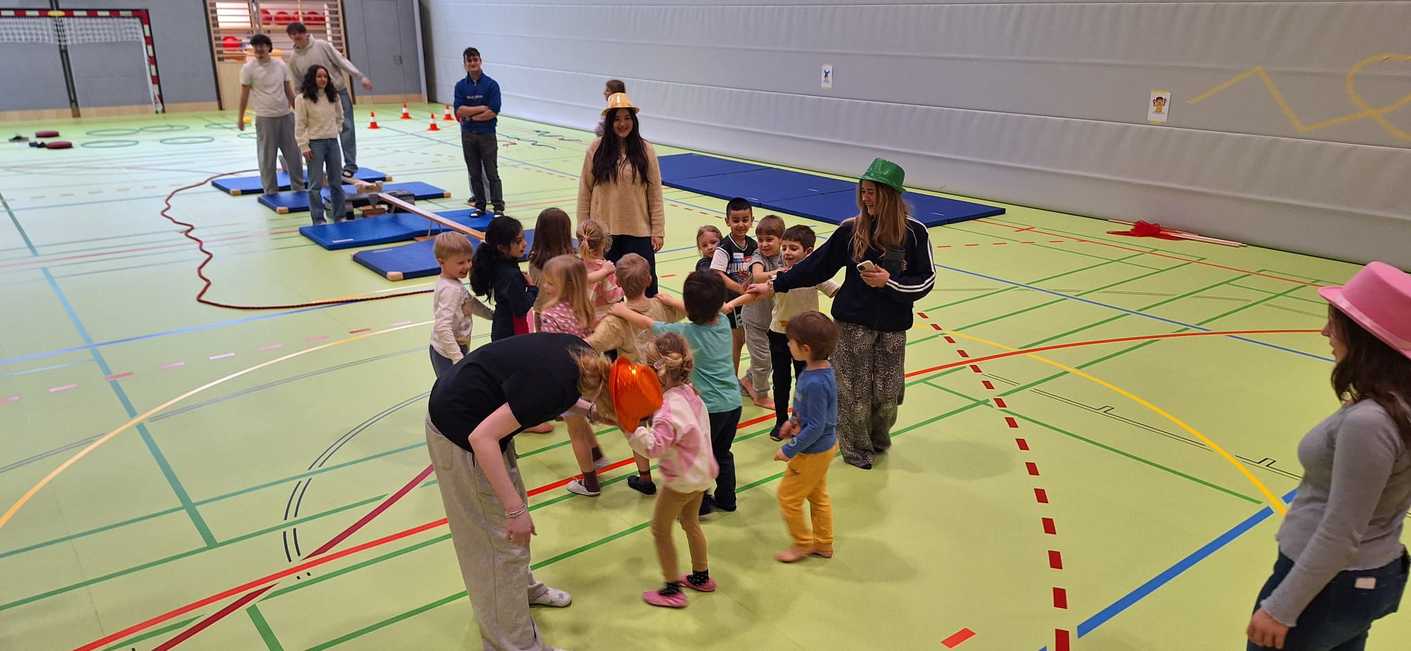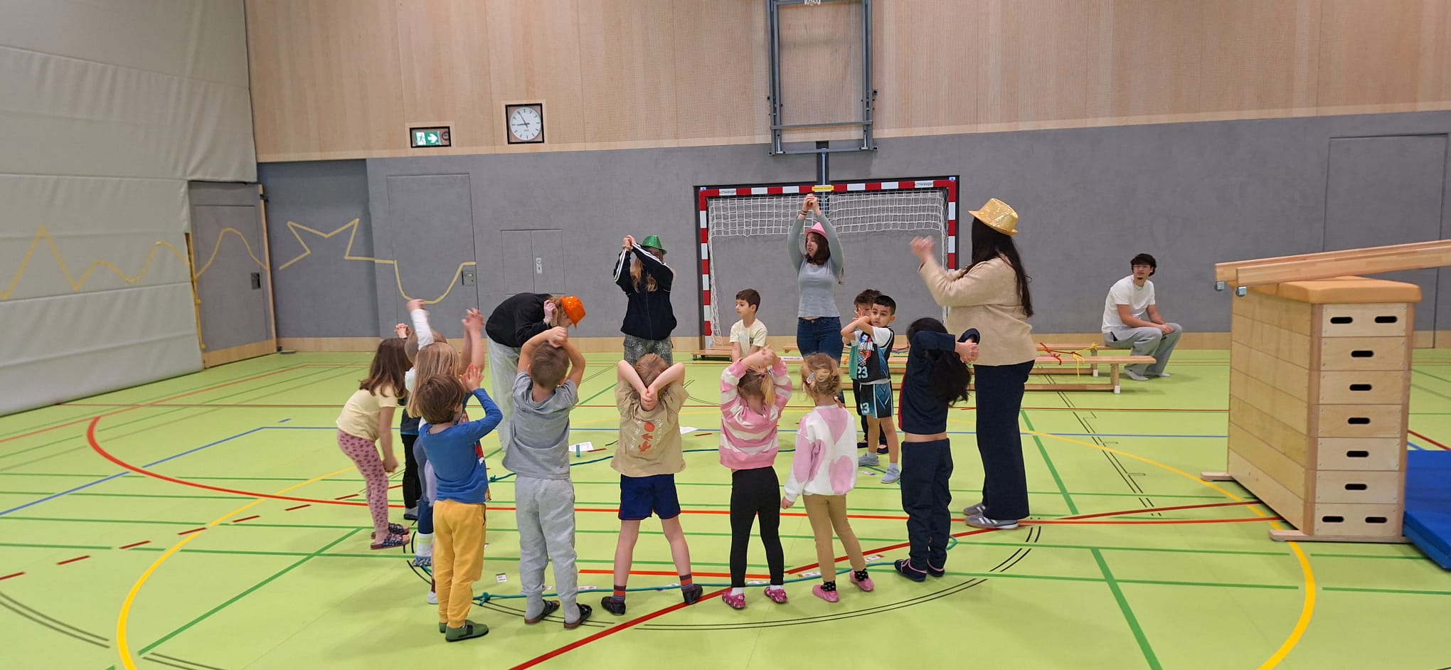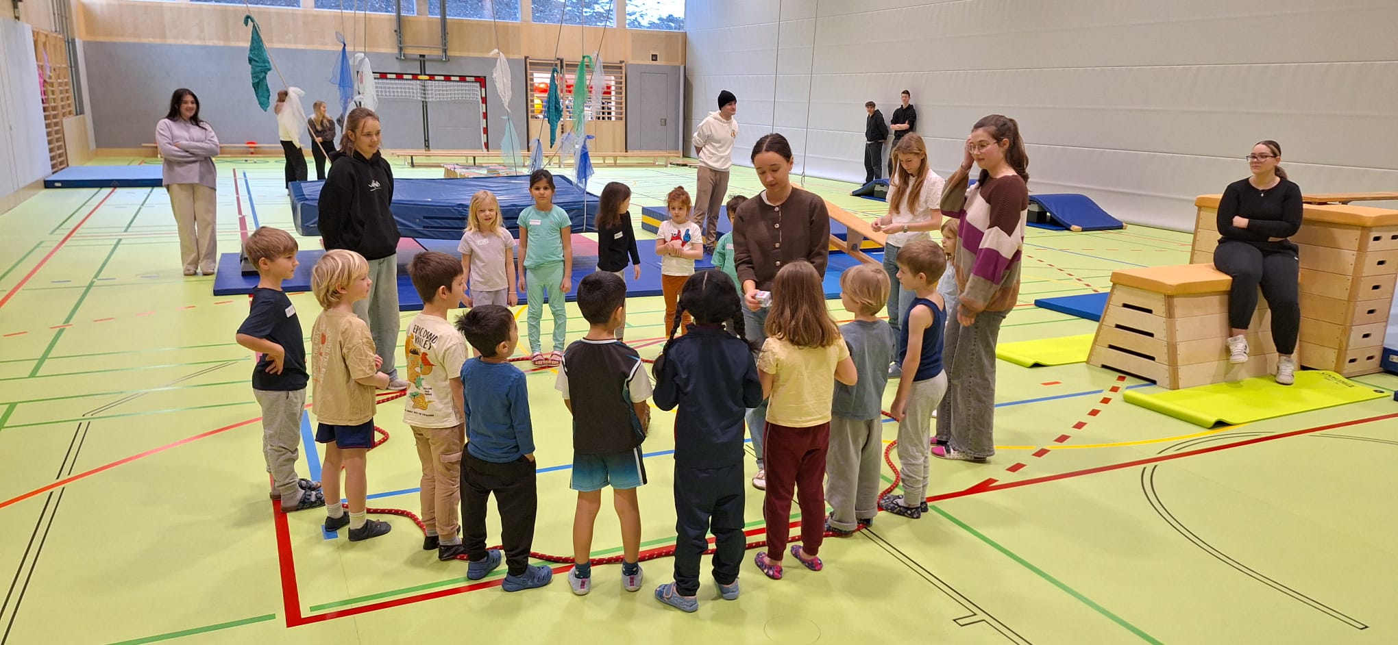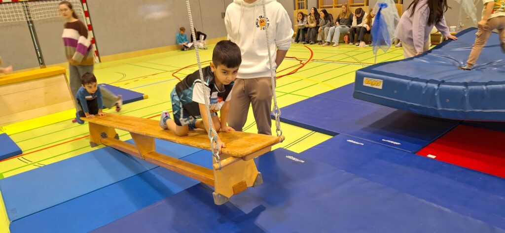 Je Einheit übernehmen zwölf Schüler:innen die Planung, Organisation und Durchführung. Sie sind verantwortlich für den Aufbau der Bewegungslandschaft, die Sicherheit der Kinder sowie die pädagogisch begleitete Umsetzung der Bewegungsangebote.