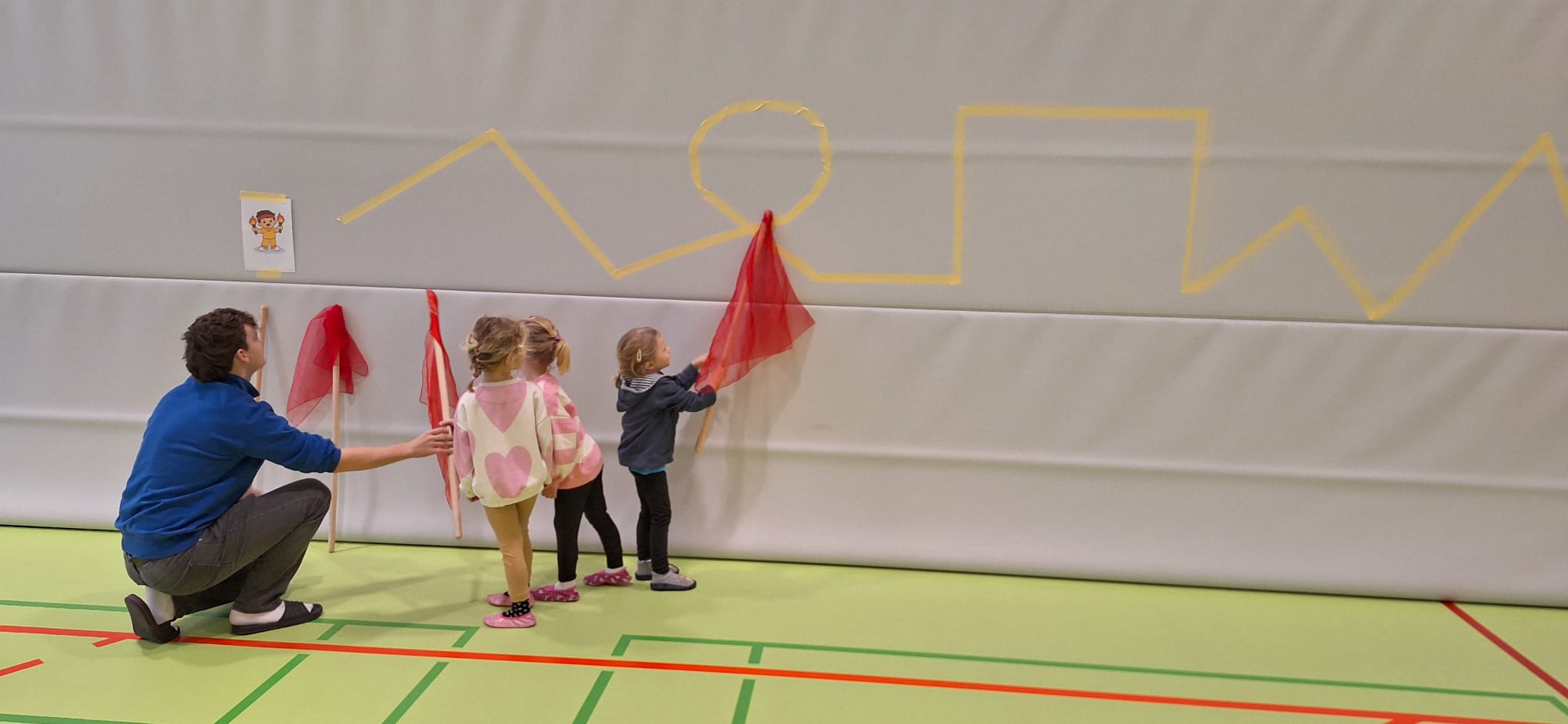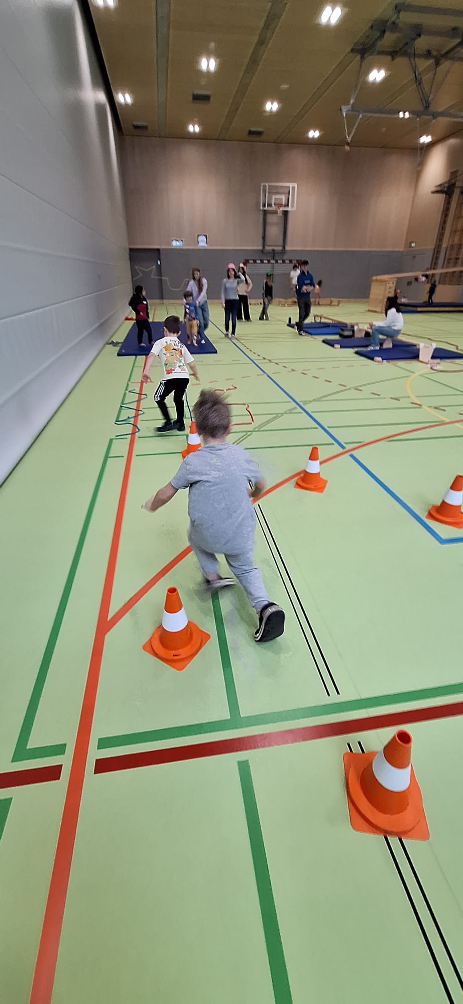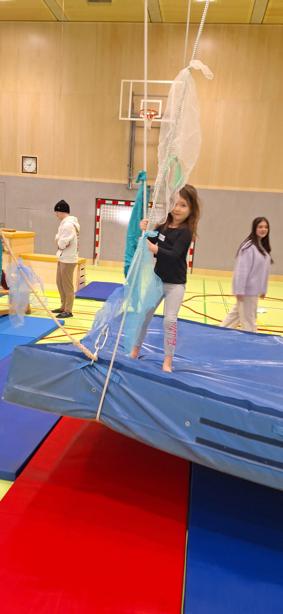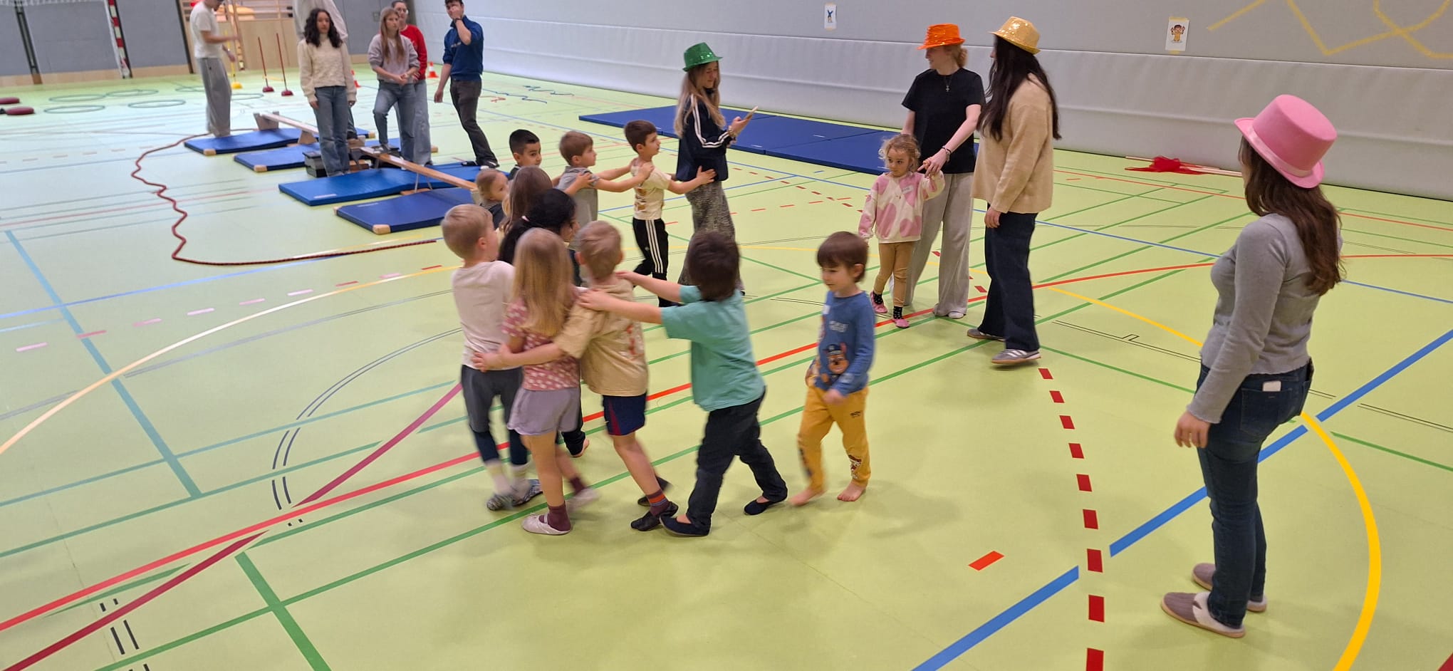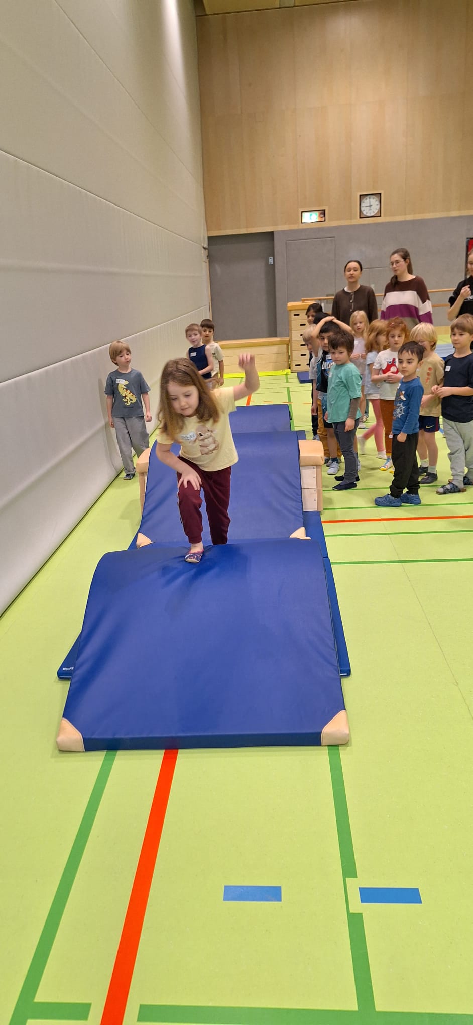 Je Einheit übernehmen zwölf Schüler:innen die Planung, Organisation und Durchführung. Sie sind verantwortlich für den Aufbau der Bewegungslandschaft, die Sicherheit der Kinder sowie die pädagogisch begleitete Umsetzung der Bewegungsangebote.