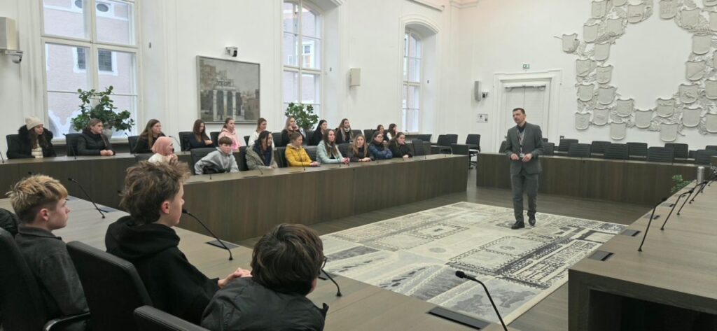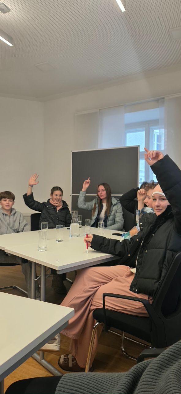 Nachdem politische Bildung ein zentrales Unterrichtsprinzip ist und die Wirkungsstätten der Demokratie, die Parlamente, dieses greifbarer machen, besuchten wir (Mag. Barbara Vierlinger und Mag. Markus Eder-Asen) mit der 1A den Salzburger Landtag. Zuerst wurden wir vom zweiten Landtagspräsidenten Andreas Teufl im Plenarsaal begrüßt und in die Aufgaben der Abgeordneten und Landesräte eingeführt. Ein interaktiver Workshop („Demokratie 1“), organisiert von akzente, bot uns vielfältige Möglichkeiten, demokratische Partizipation anschaulich zu erleben und kontroverse Themen im Klassenverband auszudiskutieren. Als Endergebnis hat die Klasse Anträge, die relevante Forderungen für junge Menschen beinhalten, für den Landtag ausgearbeitet und es wurde uns allen bewusst, dass Politik und unser Alltag stärker miteinander verflochten sind, als wir oft annehmen!